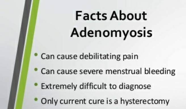 Check out this link (https://www.webmd.com/women/guide/adenomyosis-symptoms-causes-treatments#1) to learn more about Adenomyosis